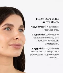 - Zapewnia rozświetlenie i głębokie nawilżenie skóry wokół oczu.