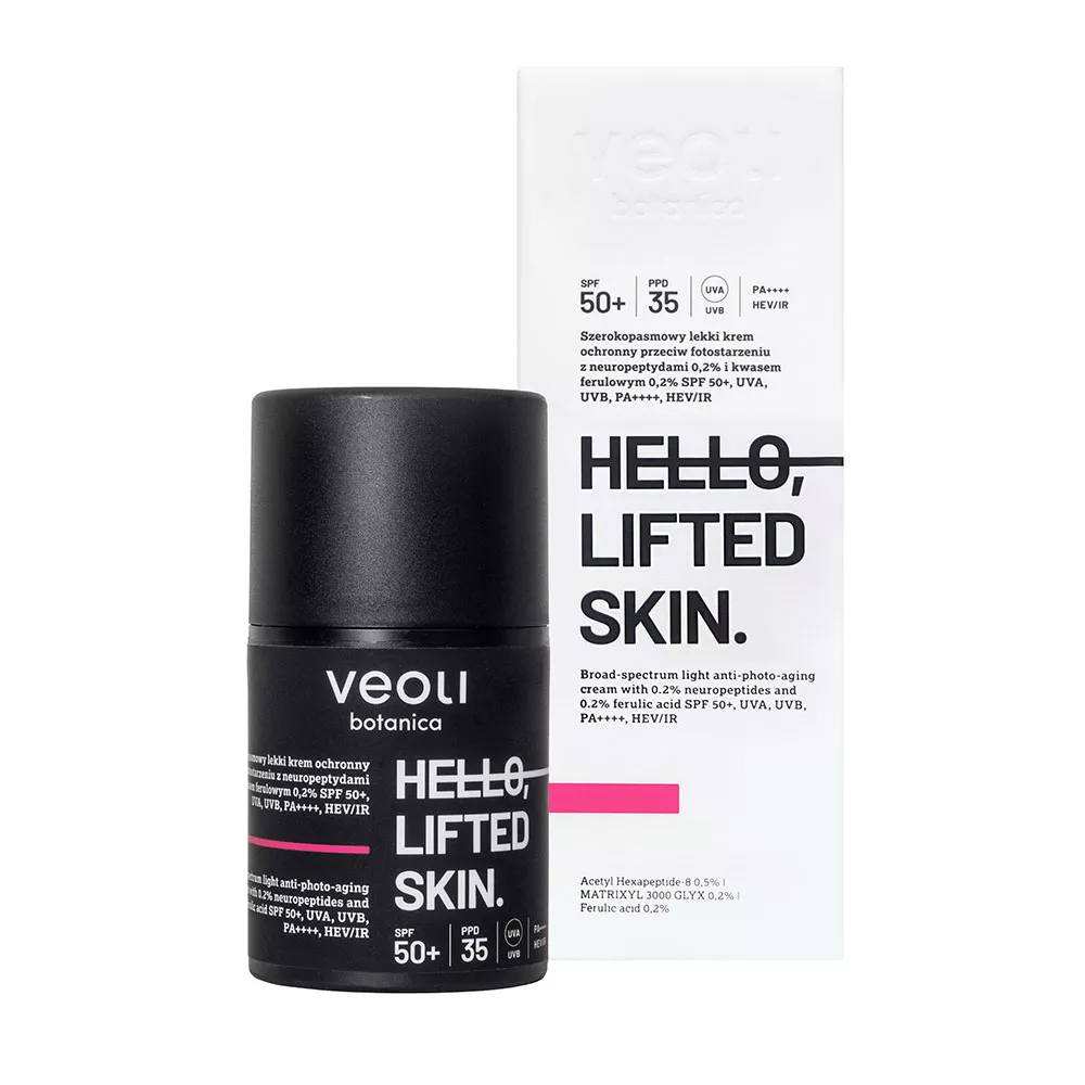 Veoli Botanica Hello, Lifted skin to krem, który pozwala maksymalizować efekty pielęgnacji w jednym kroku, bez kompromisów. Zainwestuj w zdrową, jędrną i młodą skórę – wybierz szerokopasmową ochronę i skuteczną pielęgnację anti-aging w jednym produkcie. Zamów już dziś i przekonaj się, jak komfortowa i skuteczna może być codzienna ochrona Twojej skóry!