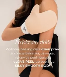 - Nałóż balsam brązujący na suchą i oczyszczoną skórę ciała. Szczególną uwagę zwróć na równomierne rozprowadzenie produktu, stosując cieńszą warstwę na łokciach, kolanach i kostkach.
