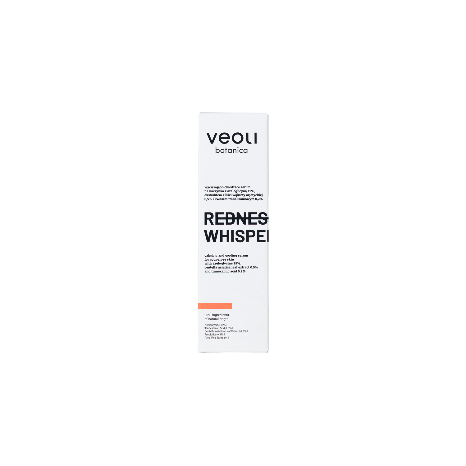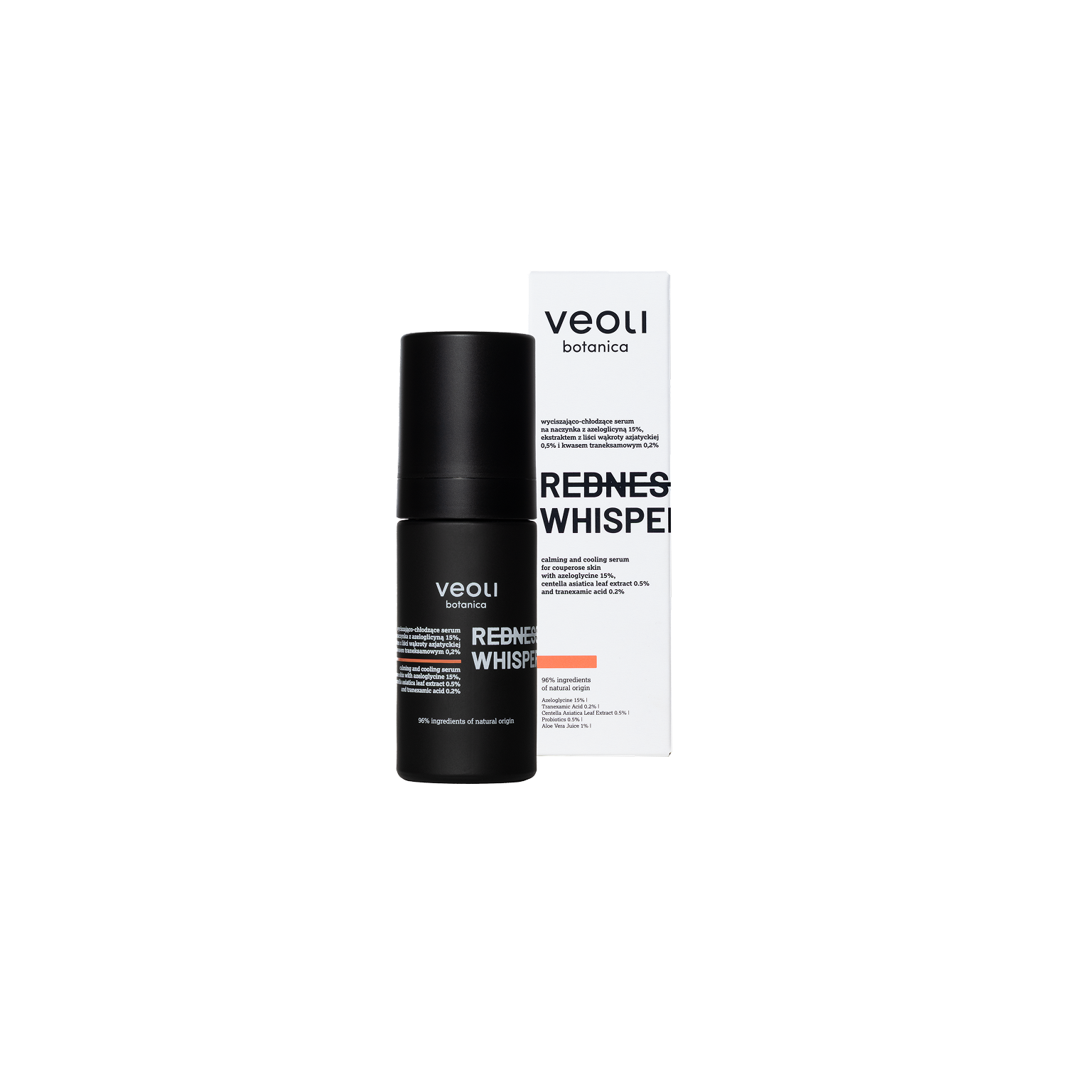 Poznaj Veoli Botanica Redness Whisperer – wyciszająco-chłodzące serum na naczynka, stworzone z myślą o cerze naczynkowej, reaktywnej, zaczerwienionej oraz wrażliwej. To ultralekkie serum w formie emulsyjnej natychmiast koi, łagodzi i przynosi ulgę nawet najbardziej wymagającej skórze, nie obciążając jej – idealne także dla cer tłustych i mieszanych, które nie tolerują ciężkich formuł.