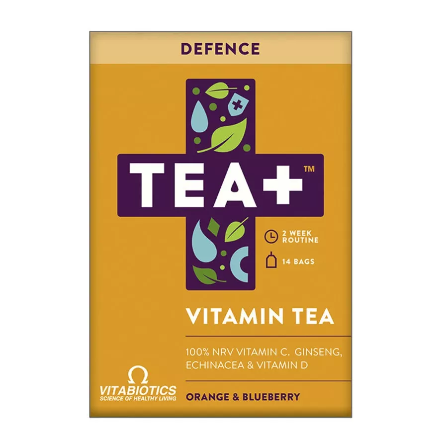 Zapewnij swojemu organizmowi wsparcie, jakiego potrzebuje, dzięki Vitabiotics Tea+ Defence - herbacie witaminowej stworzonej z myślą o wzmocnieniu odporności. Ta wyjątkowa mieszanka łączy w sobie dobroczynne działanie zielonej herbaty, ziół oraz witamin, oferując jednocześnie przyjemny pomarańczowo-borówkowy smak.