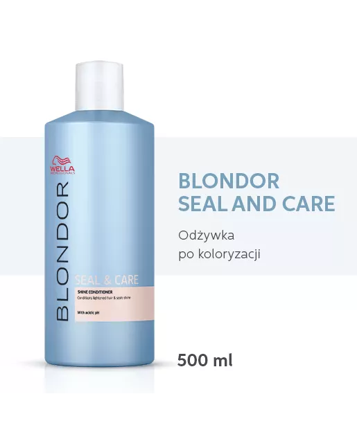 Odpowiednio pielęgnuj rozjaśnione włosy przy użyciu Blondor Seal & Care, kluczowego zabiegu po rozjaśnianiu, stworzonego do współpracy z produktami z serii Blondor. Blondor Seal & Care umożliwia uzyskanie doskonałych rezultatów podczas usług rozjaśniających. Jego kwaśne pH kondycjonuje włosy po każdym zabiegu rozjasniającym. Zapewnia ochronę intensywnego połysku i promiennej żywotności blond koloru, a także stabilizuje pigmenty koloru.