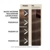 Nakładać na wilgotne włosy i przeczesać grzebieniem dla równomiernego pokrycia. Pozostawić na 10-20 minut. Zmyć wodą. Zaleca się nakładanie w rękawiczkach.