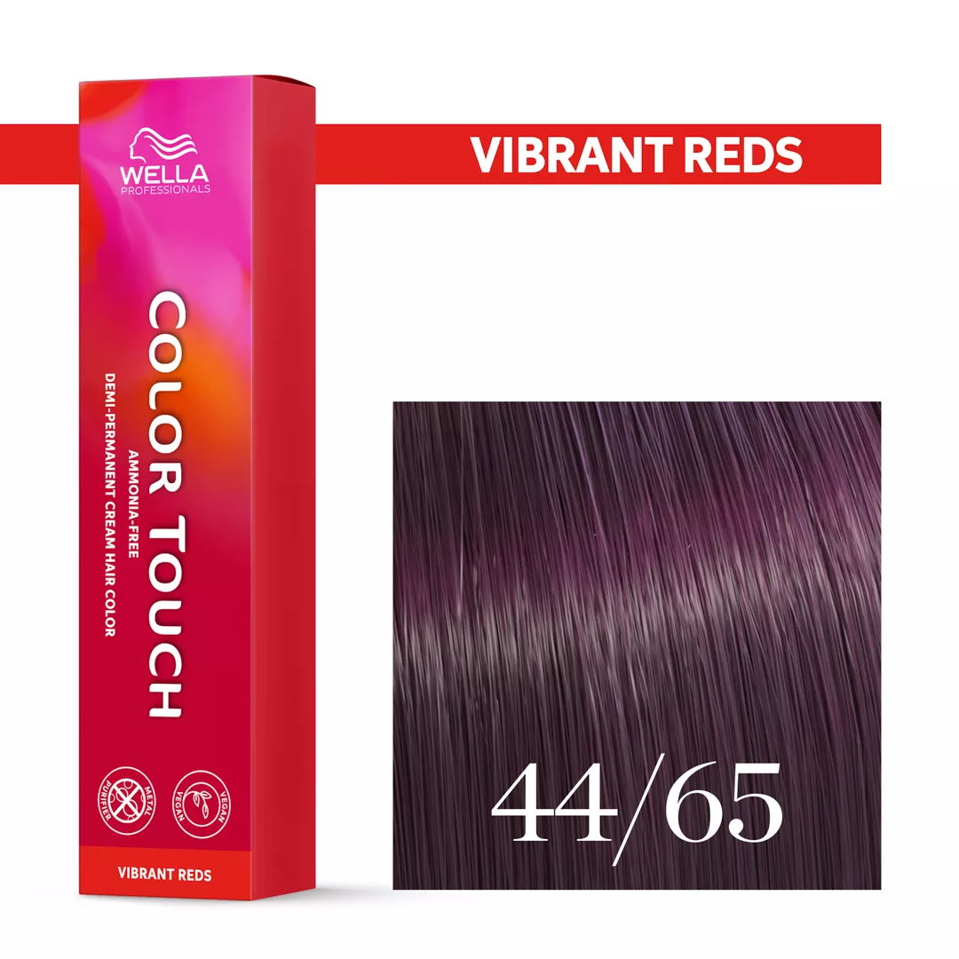 Wella Color Touch - półtrwała farba bez amoniaku, krem tonujący (60 ml). Do farby należy dokupić oksydant. Krem dzięki łagodnej i zarazem skutecznej formule wyrównuje porowatą strukturę włosów i zapewnia skuteczną przyczepność pigmentów odbijających światło, odpowiedzialnych za głębokość i wielowymiarowość refleksów oraz nadanie połysku. Rezultatem jest do 50% bardziej żywy kolor. Krem koloryzujący bez amoniaku zawiera naturalny wosk, który nadaje włosom piękny blask i wydobywa intensywny, żywy kolor oraz połysk intensywniejszy o 50% w porównaniu do naturalnych włosów.
