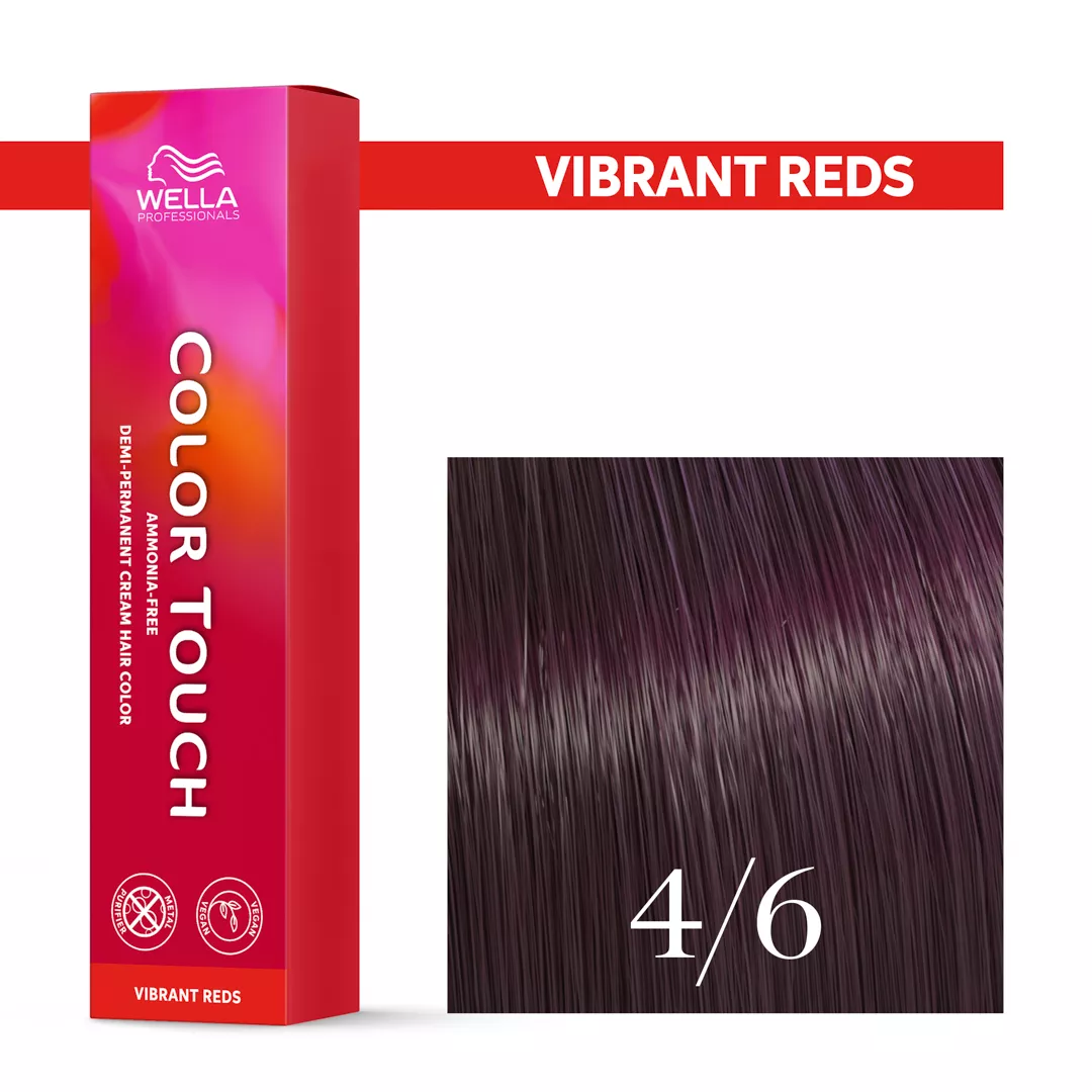 Wella Color Touch - półtrwała farba bez amoniaku, krem tonujący (60 ml). Do farby należy dokupić oksydant. Krem dzięki łagodnej i zarazem skutecznej formule wyrównuje porowatą strukturę włosów i zapewnia skuteczną przyczepność pigmentów odbijających światło, odpowiedzialnych za głębokość i wielowymiarowość refleksów oraz nadanie połysku. Rezultatem jest do 50% bardziej żywy kolor. Krem koloryzujący bez amoniaku zawiera naturalny wosk, który nadaje włosom piękny blask i wydobywa intensywny, żywy kolor oraz połysk intensywniejszy o 50% w porównaniu do naturalnych włosów.