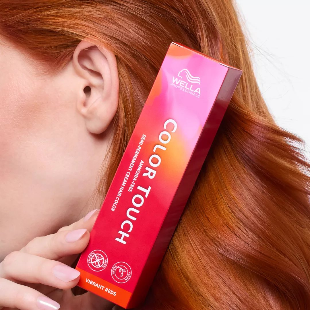 Wella Color Touch - półtrwała farba bez amoniaku, krem tonujący (60 ml). Do farby należy dokupić oksydant. Krem dzięki łagodnej i zarazem skutecznej formule wyrównuje porowatą strukturę włosów i zapewnia skuteczną przyczepność pigmentów odbijających światło, odpowiedzialnych za głębokość i wielowymiarowość refleksów oraz nadanie połysku. Rezultatem jest do 50% bardziej żywy kolor. Krem koloryzujący bez amoniaku zawiera naturalny wosk, który nadaje włosom piękny blask i wydobywa intensywny, żywy kolor oraz połysk intensywniejszy o 50% w porównaniu do naturalnych włosów.