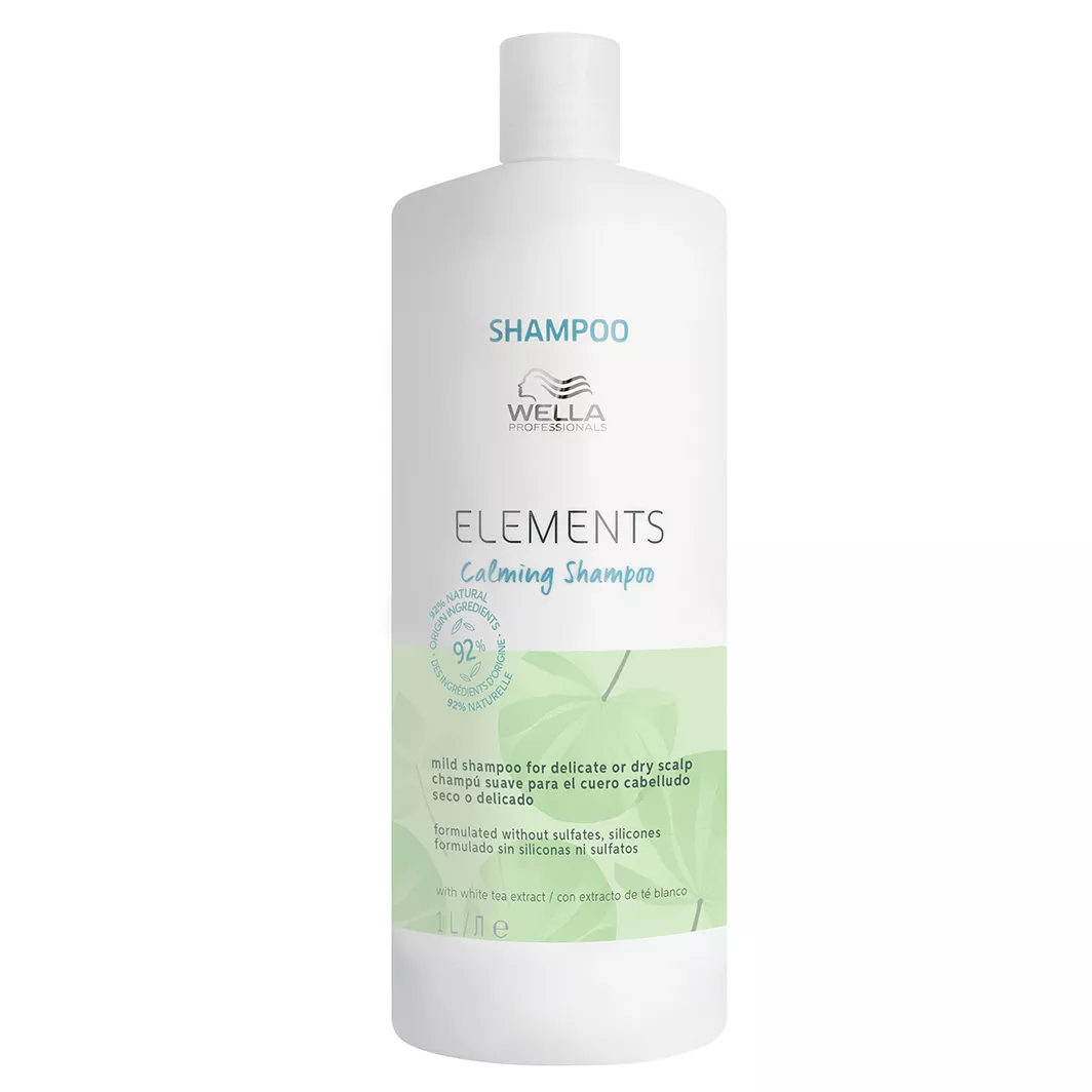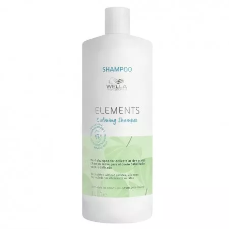 Szampon do wrażliwej i suchej skóry glowy Wella Elements Calming przywraca komfort i dobre samopoczucie. Szampon delikatnie oczyszcza skórę dzięki zawartości surfaktantów pochodzenia naturalnego. Ponadto działa nawilżająco, kojąco i uspokajająco. Włosy wyglądają zdrowo, są odświeżone i błyszczące. W składzie nie ma siarczanów, silikonów. Aż 92% naturalnych składników.