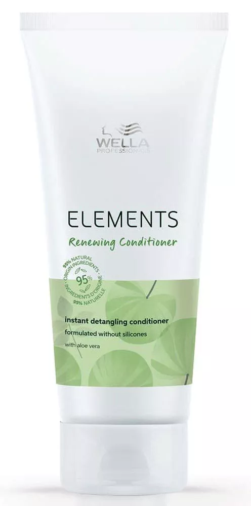Regenerująca odżywka do włosów Wella Professionals Elements Renewing wygładza pasma, dodaje im naturalnego połysku i sprawia, że są bardziej podatne na układanie. Produkt zawiera naturalne składniki, takie jak aloes, esencja z oliwki i substancje odżywcze pochodzące z bawełny. Aloes odpowiada za pielęgnację i odpowiednie nawilżenie włosów, a oliwka i bawełna działają wygładzająco, równocześnie dodając nieskazitelnego blasku. Ta profesjonalna, nawilżająca odżywka może być stosowana do każdego rodzaju włosów, również farbowanych i po zabiegach keratynowych. Specjalnie opracowaną formułę bez silikonów zamknięto w ekologicznym opakowaniu, które nadaje się do recyklingu.