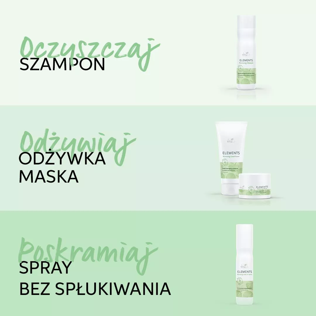 - Umyj włosy szamponem np. Wella Professionals Elements Renewing.