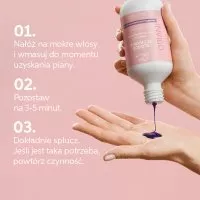 Wmasuj w mokre włosy, aż do momentu uzyskania piany. Następnie dokładnie spłucz. W razie potrzeby, powtórz czynność.