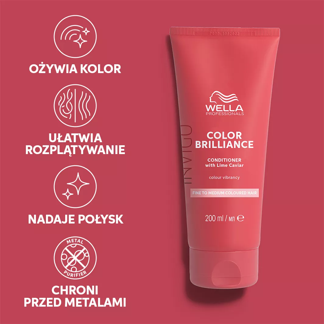 Wella Professionals Invigo Color Brilliance odżywka do włosów cienkich i normalnych to idealny sposób na zachowanie i ożywienie koloru włosów farbowanych. Dzięki unikalnej formule kosmetyk pomaga zapobiegać matowieniu i blaknięciu koloru. Zawiera kawior limonkowy, który nadaje intensywność odcienia i blask. Ochrona koloru możliwa jest dzięki połączeniu wyjątkowych składników. Cząsteczki pyłu diamentowego pokrywają powierzchnię włosa, nadając mu charakterystyczny połysk. Ekstrakt z orchidei działa odżywczo, chroniąc przed utratą wilgoci. Witamina E jest antyutleniaczem zwalczającym wolne rodniki. Histydyna pomaga w kontrolowaniu procesu utleniania po koloryzacji, a kwas glioksalowy zapewnia trwałość koloru przez dłuższy czas. Molekuły kapsułkujące miedź utrzymują intensywność odcienia. Odżywka Invigo Color Brilliance łączy w sobie całą tę kompozycję skutecznych składników, uwydatniając kolor oraz pozostawia włosy w dobrej kondycji.
