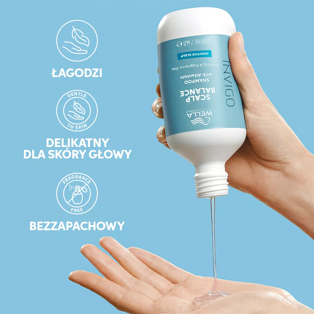 Dzięki szamponowi Wella Professionals Invigo Scalp Balance do wrażliwej skóry głowy, przeznaczonemu do pielęgnacji wrażliwych włosów i skóry głowy jest to możliwe. Wzbogacony energetyzującą formułą z orzeźwiającymi składnikami, w tym alantoiną o działaniu łagodzącym. Szampon jest delikatny dla skóry i bezzapachowy, idealny dla wrażliwych typów skóry.