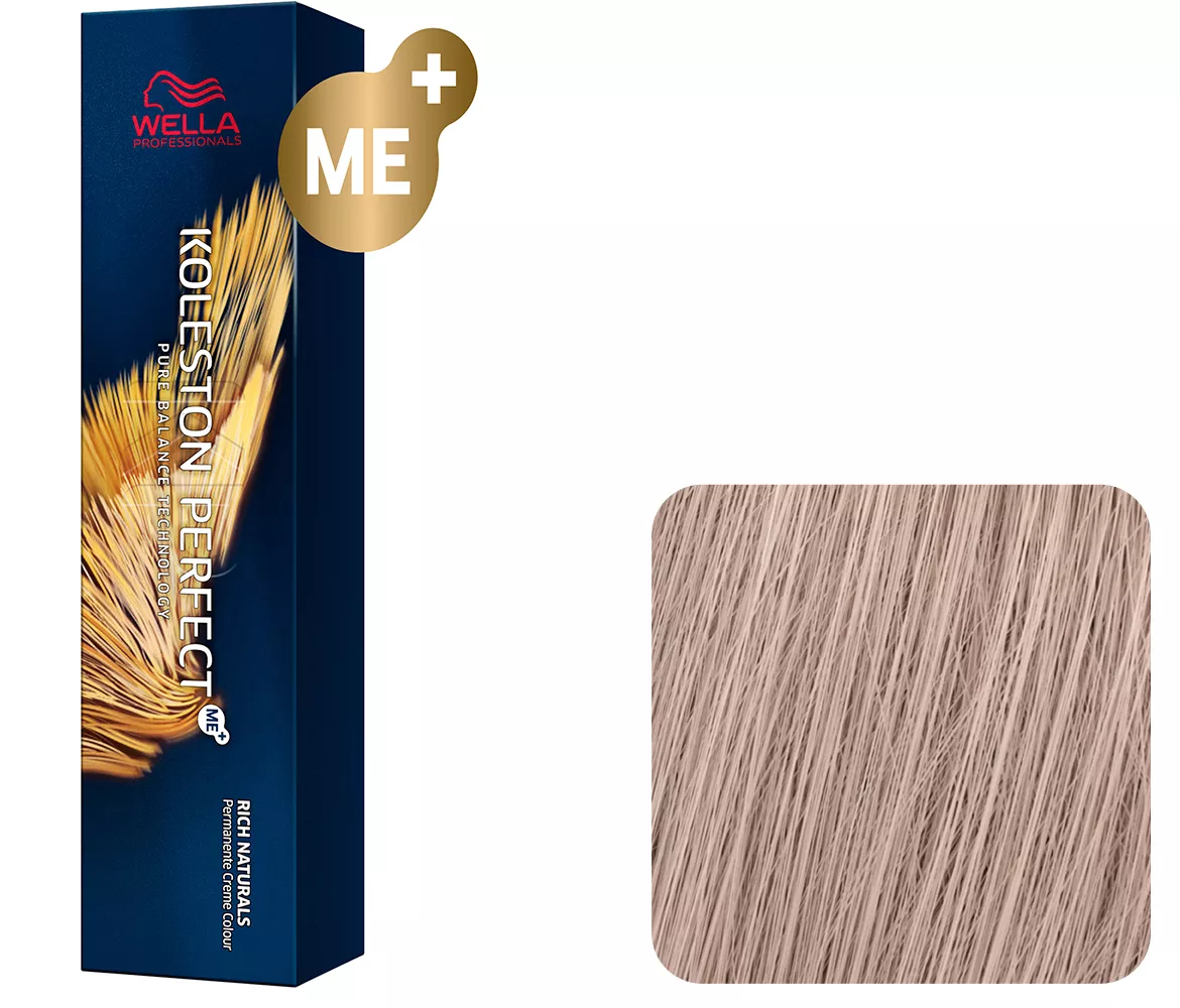 Profesjonalna farba do włosów Wella Koleston Perfect ME+ zapewnia włosom niesamowicie intensywny i lśniący kolor, w 100% pokrywa siwe włosy oraz zabezpiecza pasma przed zniszczeniami. W dodatku odznacza się niedrażniącą i łagodną formułą, a co więcej minimalizuje ryzyko wystąpienia reakcji alergicznych. W składzie produktu znajduje się opatentowana molekuła ME+, której to właśnie pigment dba o zniwelowanie występowania reakcji alergicznych. Farba posiada również dużo mniejszą zawartość perfumatów, do daje brak podrażnień w trakcie użycia oraz podnosi bezpieczeństwo całego zabiegu.