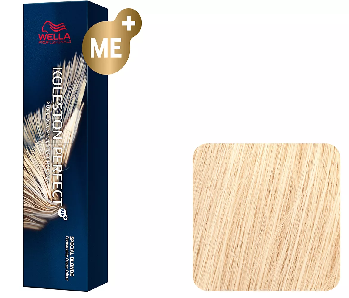 Profesjonalna farba do włosów Wella Koleston Perfect ME+ zapewnia włosom niesamowicie intensywny i lśniący kolor, w 100% pokrywa siwe włosy oraz zabezpiecza pasma przed zniszczeniami. W dodatku odznacza się niedrażniącą i łagodną formułą, a co więcej minimalizuje ryzyko wystąpienia reakcji alergicznych. W składzie produktu znajduje się opatentowana molekuła ME+, której to właśnie pigment dba o zniwelowanie występowania reakcji alergicznych. Farba posiada również dużo mniejszą zawartość perfumatów, do daje brak podrażnień w trakcie użycia oraz podnosi bezpieczeństwo całego zabiegu.