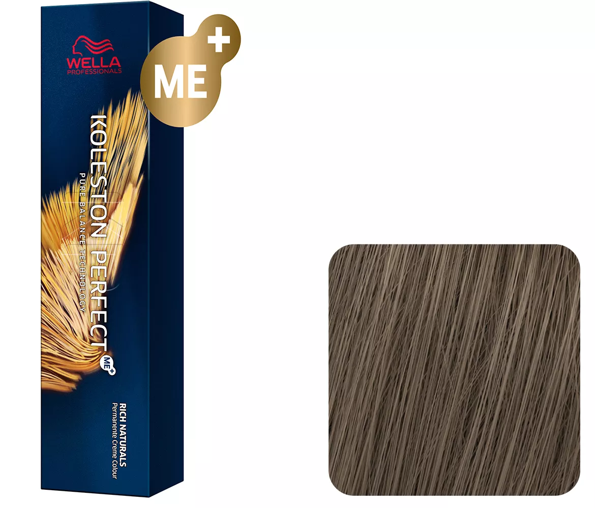 Profesjonalna farba do włosów Wella Koleston Perfect ME+ zapewnia włosom niesamowicie intensywny i lśniący kolor, w 100% pokrywa siwe włosy oraz zabezpiecza pasma przed zniszczeniami. W dodatku odznacza się niedrażniącą i łagodną formułą, a co więcej minimalizuje ryzyko wystąpienia reakcji alergicznych. W składzie produktu znajduje się opatentowana molekuła ME+, której to właśnie pigment dba o zniwelowanie występowania reakcji alergicznych. Farba posiada również dużo mniejszą zawartość perfumatów, do daje brak podrażnień w trakcie użycia oraz podnosi bezpieczeństwo całego zabiegu.