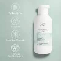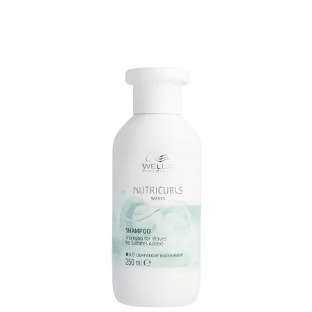Lekki szampon odżywczy Wella Professionals Nutricurls do fal podkreśla elastyczność włosów falowanych i doskonale usuwa zanieczyszczenia. Bez dodatku siarczanów. Produkt pomaga utrzymać odpowiedni poziom nawilżenia włosów dzięki zawartości kompleksu NOURISHI-IN zawierającego min. ekstrakt z otrębów pszennych i olejek jojoba.