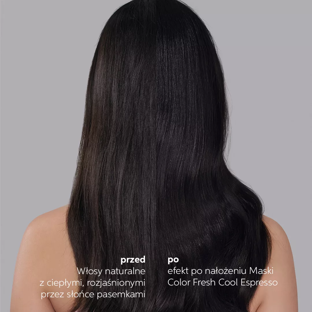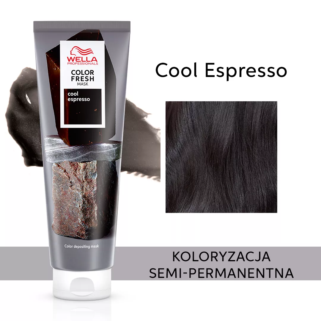 Szukasz szybkiego sposobu na odświeżenie koloru włosów? Odżywcza maska koloryzująca do włosów w kolorach brązu Wella Professionals Color Fresh Cool Espresso jest dokładnie tym, czego szukasz! Dzięki niej możesz niemal błyskawicznie uzyskać odświeżenie koloru włosów w domu, przywracając im naturalny blask i głęboki kolor. Pigmenty koloru wzmacniają kolor włosów, nadając im intensywne, ciemne tony, które zostaną z tobą na dłużej! Aplikacja produktu jest bardzo łatwa, a efekty, które utrzymują się do kilku myć, są widoczne już po 10 minutach! Ta odżywka do włosów nie niszczy ich struktury, a dzięki olejowi z awokado wręcz przeciwnie - pielęgnuje i wzmacnia. W składzie produktu nie ma silikonu.