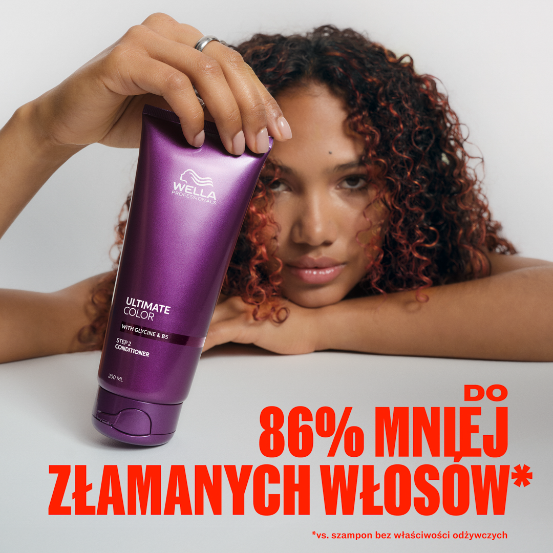 Zadbaj o włosy od wewnątrz dzięki nawilżającej odżywce Wella Professionals Ultimate Color, która wygładza łuski włosa, nadając im jedwabistą miękkość i zapewniając do 86% mniej łamliwości*. Dzięki redukcji porowatości, odżywka pomaga zatrzymać pigmenty koloru wewnątrz włosa. Formuła jest wolna od składników pochodzenia zwierzęcego, przebadana dermatologicznie i zawiera glicynę oraz technologię Metal Purifier, które chronią przed uszkodzeniami spowodowanymi wolnymi rodnikami, a także prowitaminę B5, która zatrzymuje nawilżenie.
