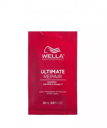 Profesjonalny szampon odżywczy do włosów Wella Professional Ultimate Repair. Przeznaczony do pielęgnacji każdego typu włosów, również zniszczonych, normalnych, farbowanych czy puszących się. nikalna formuła Metal Purifier działa jak detoks, skutecznie usuwając z powierzchni włosów szkodliwe metale oraz wszelkie zanieczyszczenia. Specjalnie dobrane składniki (kwasy AHA i omega-9) zawarte w szamponie Ultimate Repair działają również wzmacniająco na powierzchni i wewnątrz włosów i sprawiają, że włosy zyskują blask, gładkość oraz niebywałą miękkość.