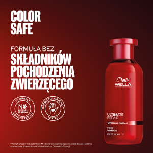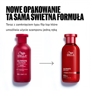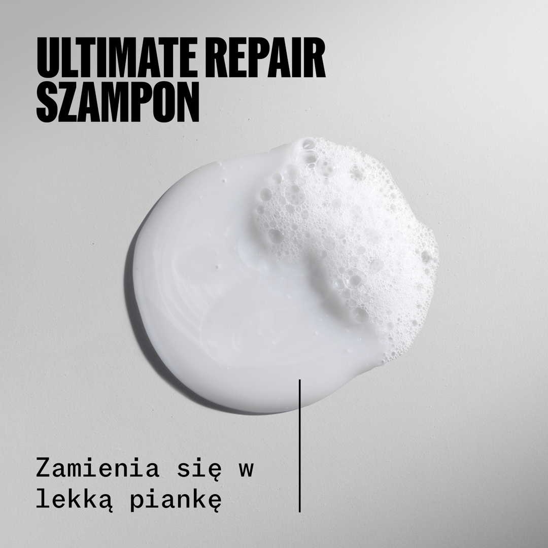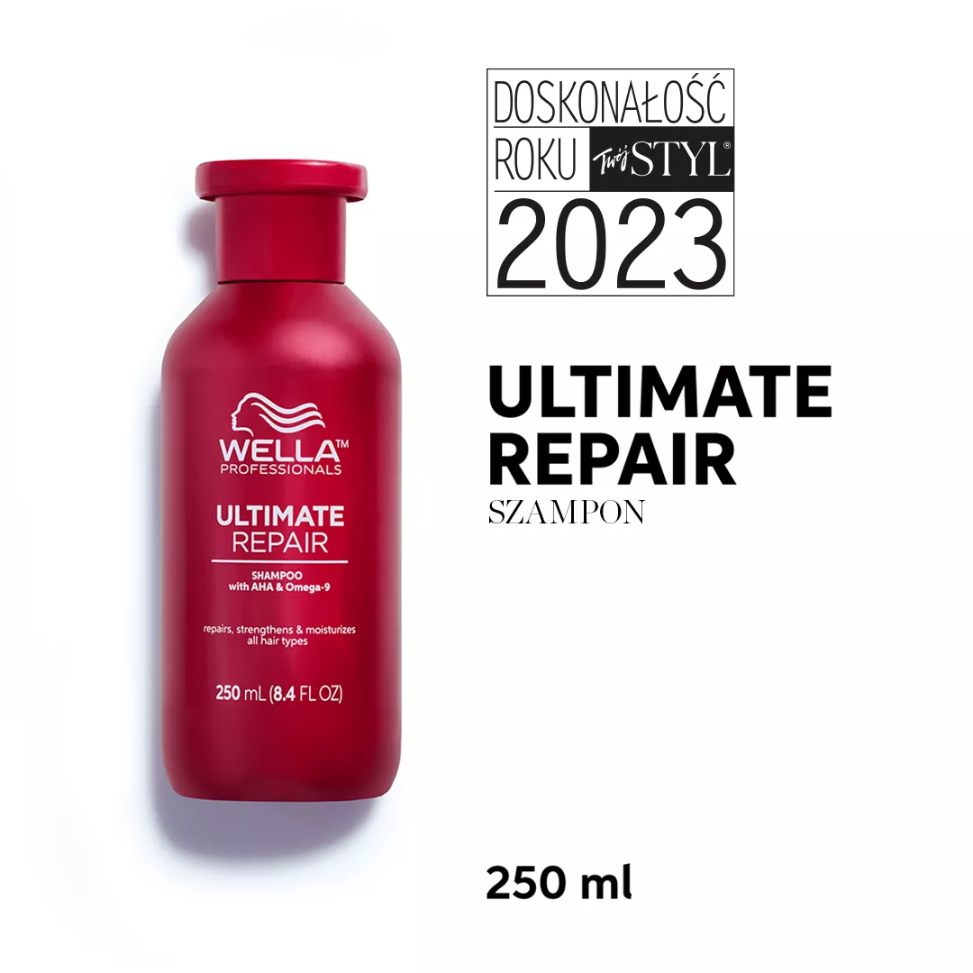 Profesjonalny szampon odżywczy do włosów Wella Professional Ultimate Repair. Przeznaczony do pielęgnacji każdego typu włosów, również zniszczonych, normalnych, farbowanych czy puszących się. nikalna formuła Metal Purifier działa jak detoks, skutecznie usuwając z powierzchni włosów szkodliwe metale oraz wszelkie zanieczyszczenia. Specjalnie dobrane składniki (kwasy AHA i omega-9) zawarte w szamponie Ultimate Repair działają również wzmacniająco na powierzchni i wewnątrz włosów i sprawiają, że włosy zyskują blask, gładkość oraz niebywałą miękkość.