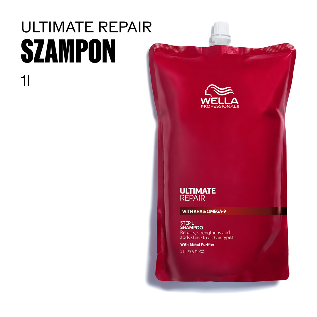 Profesjonalny szampon odżywczy do włosów Wella Professional Ultimate Repair. Przeznaczony do pielęgnacji każdego typu włosów, również zniszczonych, normalnych, farbowanych czy puszących się. nikalna formuła Metal Purifier działa jak detoks, skutecznie usuwając z powierzchni włosów szkodliwe metale oraz wszelkie zanieczyszczenia. Specjalnie dobrane składniki (kwasy AHA i omega-9) zawarte w szamponie Ultimate Repair działają również wzmacniająco na powierzchni i wewnątrz włosów i sprawiają, że włosy zyskują blask, gładkość oraz niebywałą miękkość.