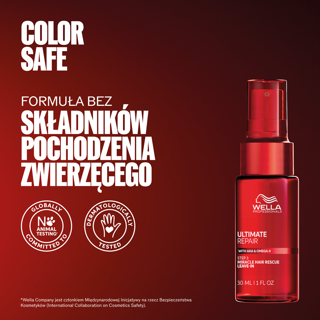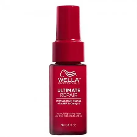 Serum ochronne do włosów Wella Professionals Ultimate Reapir Miracle. Ten luksusowy kosmetyk intensywnie i odczuwalnie odbudowuje nadwerężone zabiegami chemicznymi włosy, zarówno od zewnątrz, jak i od środka. Formuła opierqa się na kwasie alfa-hydroksylowym 9AHA) i omega-9. Włosy dzięki stosowaniu serum stają się błyszczące i gładsze, są mocniejsze i zdrowsze. Zawarte w serum Ultimate Repair Miracle Hair Rescue składniki intensywnie regenerują i wzmacniają, sprawiając, że włosy są bardziej odporne na łamanie i wszelkie uszkodzenia.