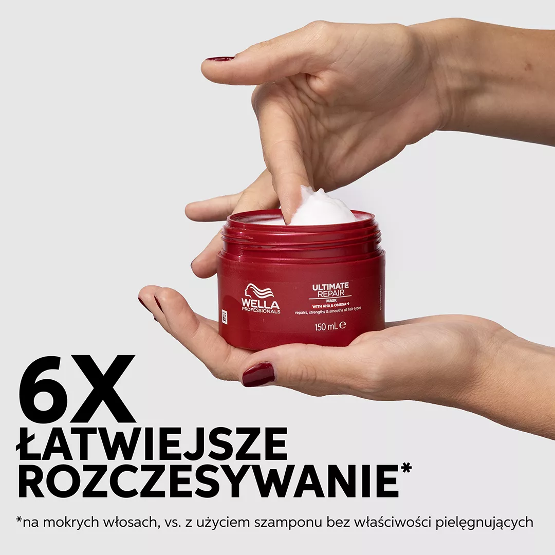 Nałóż na czyste, wilgotne włosy i pozostaw na 5-10 minut, a następnie dokładnie spłucz. Aby uzyskać najlepsze rezultaty i zdrowo wyglądające włosy, stosuj razem z krokami 1, 3 i 4 z serii Wella Professionals Ultimate Repair.