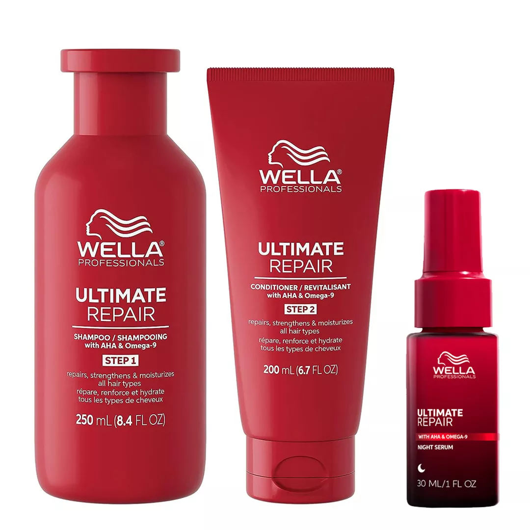 Wella Ultimate Repair, zestaw regenerujący: szampon + odżywka + serum nocne