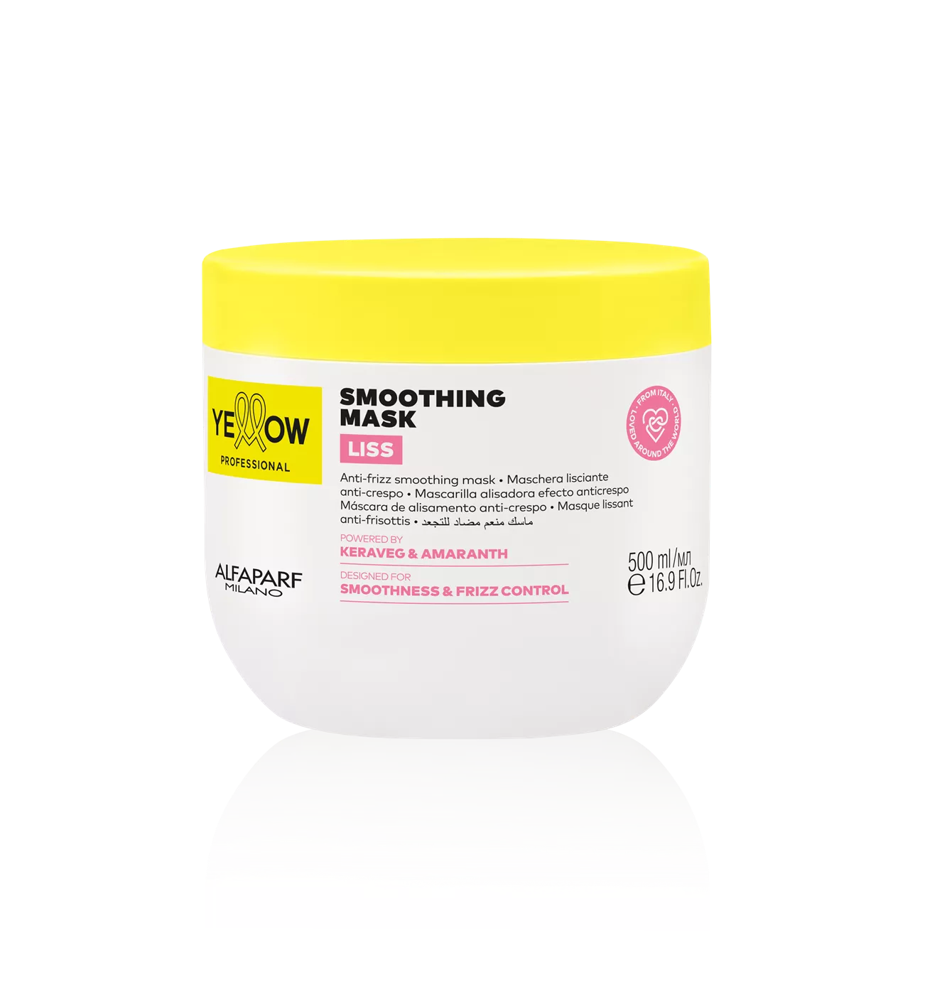 Odkryj moc Yellow Professional Liss, maski wygładzającej stworzonej specjalnie dla włosów puszących się i niesfornych. Ta intensywnie działająca maska o pojemności 500ml to doskonałe rozwiązanie dla osób pragnących ujarzmić swoje włosy i uzyskać efekt jedwabiście gładkich pasm.