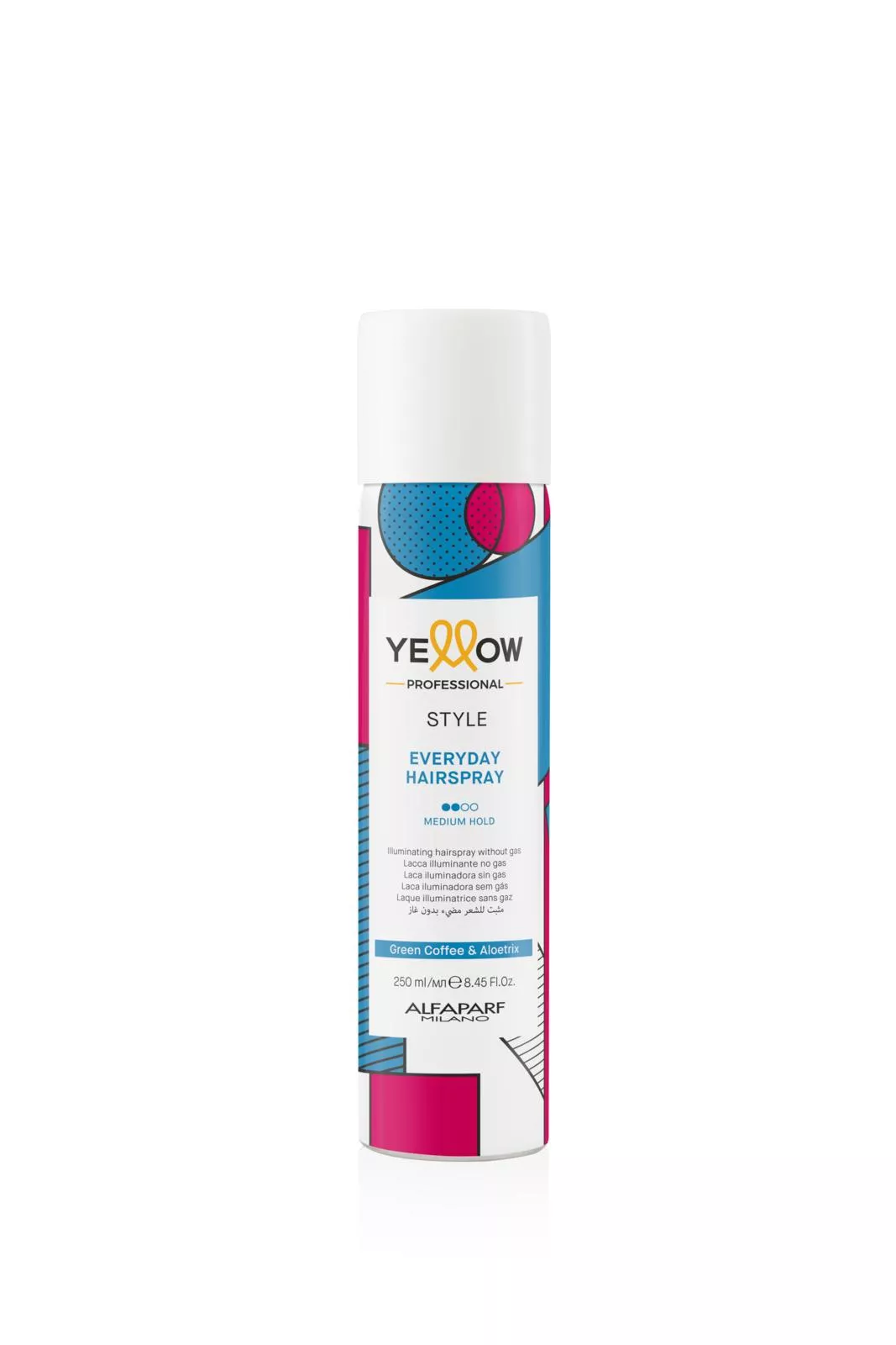 Odkryj moc Yellow Professional Style Everyday Hairspray, lakieru do włosów bez gazu, stworzonego z myślą o codziennej stylizacji. Dzięki unikalnej formule, która zawiera Aloetrix i zieloną kawę, ten produkt zapewnia włosom ochronę i witalność każdego dnia.
