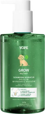 Odkryj skuteczną pielęgnację włosów z Yope Grow My Hair – szamponem kuracją przeciw wypadaniu włosów. To nowoczesny szampon stworzony z myślą o osobach z problemem wypadania i przerzedzania włosów. Łączy zaawansowaną technologię z mocą natury, zapewniając skórze głowy optymalne warunki do wzrostu zdrowych, mocnych włosów.