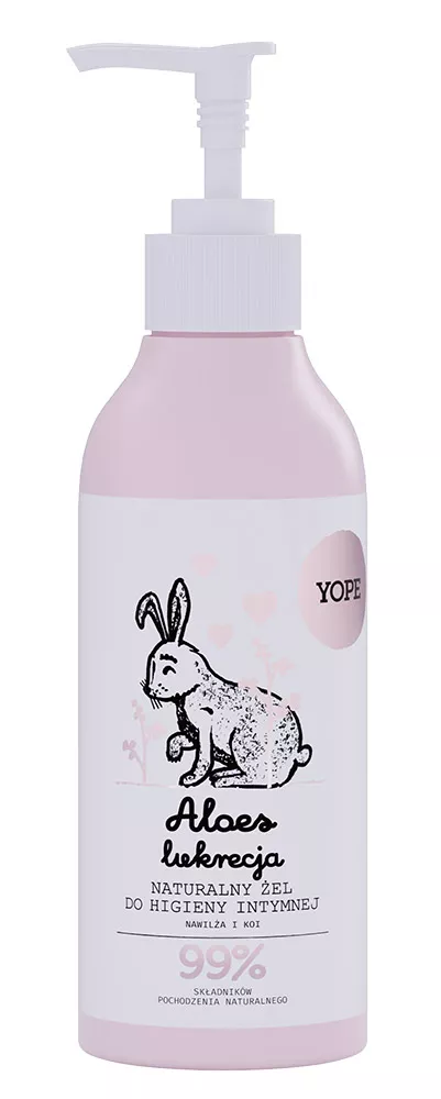 Poznaj Yope żel do higieny intymnej Aloes i Lukrecja 300ml – delikatny kosmetyk stworzony z myślą o codziennej pielęgnacji stref intymnych. Dzięki wysokiej zawartości składników pochodzenia naturalnego (aż 98%), żel skutecznie dba o florę bakteryjną, zapewniając uczucie świeżości i komfortu przez cały dzień. Formuła oparta na soku z aloesu, ekstrakcie z lukrecji oraz hydrolacie z jaśminu łagodzi podrażnienia i wspiera naturalną barierę ochronną skóry. Wygodna pompka ułatwia aplikację, a delikatny zapach sprawia, że codzienna higiena staje się prawdziwą przyjemnością.
