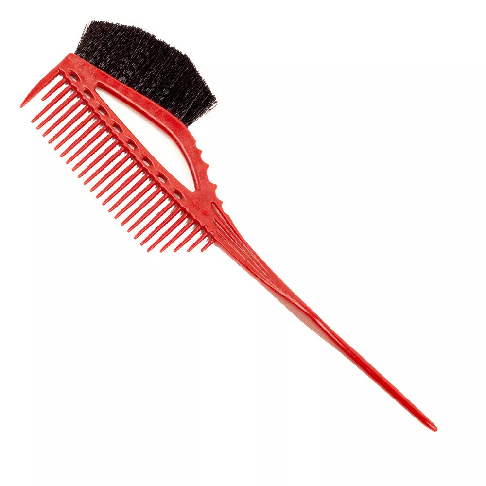 Odkryj innowacyjny pędzel z grzebykiem Y.S. Park 640 w kolorze czerwonym, który zrewolucjonizuje Twoje podejście do farbowania włosów. Dzięki unikalnemu połączeniu szczoteczki i grzebyka, aplikacja farby oraz dzielenie włosów na pasma stają się niezwykle proste i szybkie. Wyposażony w wygodny szpikulec, pędzel ułatwia precyzyjne dzielenie włosów, a okrągłe ząbki grzebienia minimalizują ryzyko uszkodzeń.