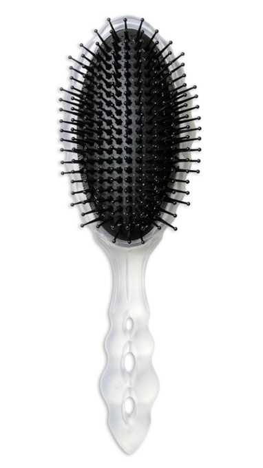 - Płaska forma szczotki gwarantuje wygodę użytkowania i uniwersalność, sprawdzając się przy różnych długościach oraz typach włosów.